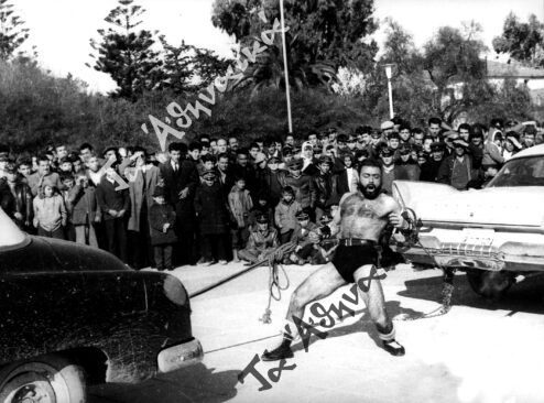 Πλατεία Κοτζιά, πλατεία Κλαυθμώνος, πλατεία Θησείου, περιοδείες στις επαρχίες. Τραβούσε λεωφορεία με το στόμα γύρω από πλατείες, αλλά πάλεψε και με την αρκούδα ενός αθίγγανου στη Σάμο. Στα Καρβουνιάρικα στον Πειραιά κάθισε για να περάσει πάνω από την κοιλιά του η ρόδα ενός φορτηγού. Σε άλλη περίπτωση δέχτηκε να ρίξουν στην κοιλιά του καμάκι με ψαροντούφεκο, ενώ συνήθως μια ξιφολόγχη πετιόταν από ύψος πάνω στην κοιλιά του. Πριν από τις παραστάσεις του άναβε ένα κερί στην εκκλησία, ενώ ποτέ δεν μπλεκόταν σε καβγάδες.