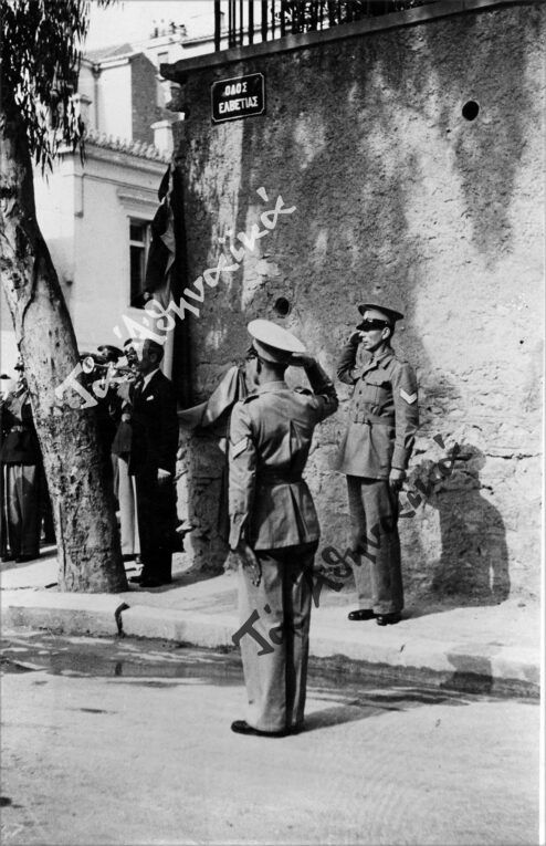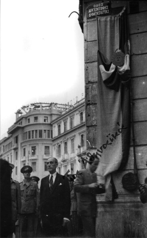 Στιγμιότυπο από την τελετή μετονομασίας της οδού Βουλής σε Αργεντινής Δημοκρατίας (Νοέμβριος 1945). Αρχείο Αρ. Σκληρού «Σύλλογος των Αθηναίων».