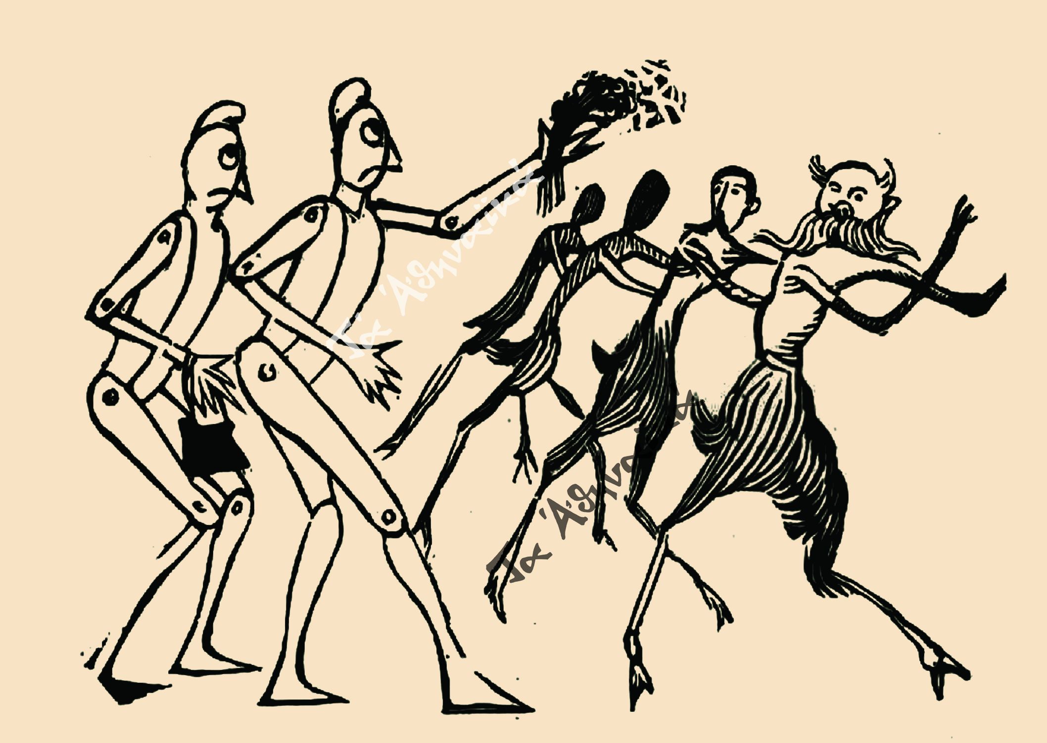 να διώξουν τα «παγανά» (σκίτσο από τον «ΡΩΜΗΟ», 1898)
