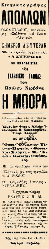 Όλα ξεκίνησαν με την απόφαση της Dag Film να γυρίσει την τελευταία ή μία από τις τελευταίες βουβές ελληνικές ταινίες, με τον τίτλο «Η Μπόρα». Το σενάριο είχε συγγράψει ο Παύλος Νιρβάνας. Η εταιρεία «DAG FILM» λειτουργούσε ακόμη ως προσωπική εταιρία του μεγαλύτερου από τους τέσσερις αδελφούς Γαζιάδη. Εξάλλου, το «DAG» ή «Δ.Α.Γ.» ανταποκρινόταν στα αρχικά του: Δημήτριος Αναστασίου Γαζιάδης. Απαράμιλλος τεχνίτης γνώριζε μεγάλες δόξες το 1929. Στις αρχές του χρόνου είχε παρουσιάσει την «Αστέρω», αισθηματικό βουκολικό δράμα. Ως ο σημαντικότερος παράγων της μεγάλης επιτυχίας της ταινίας θεωρήθηκε το σενάριό της, το οποίο είχε γράψει ο Παύλος Νιρβάνας.