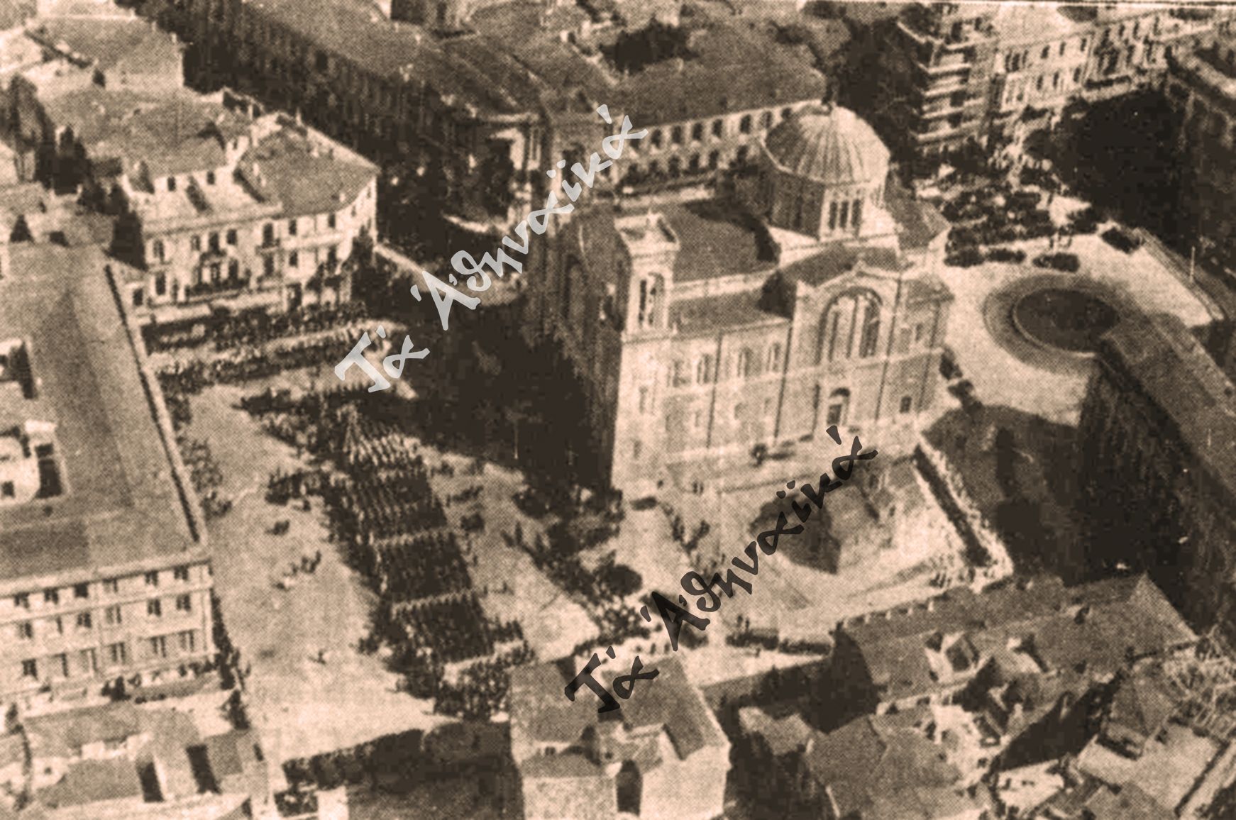 Αεροφωτογραφία από τον εορτασμό της εθνικής εορτής της 25ης Μαρτίου 1935. Στο κέντρο η Μητρόπολη των Αθηνών.