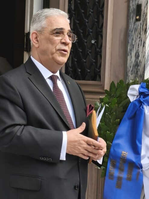Από τον λόγο του Ελευθέριου Γ. Σκιαδά την Κυριακή 12 Οκτωβρίου 2025 κατά τη διάρκεια του Εορτασμού της Επετείου της Απελευθερώσεως των Αθηνών από τα στρατεύματα κατοχής, έμπροσθεν του ΦΣ ΠΑΡΝΑΣΣΟΣ.