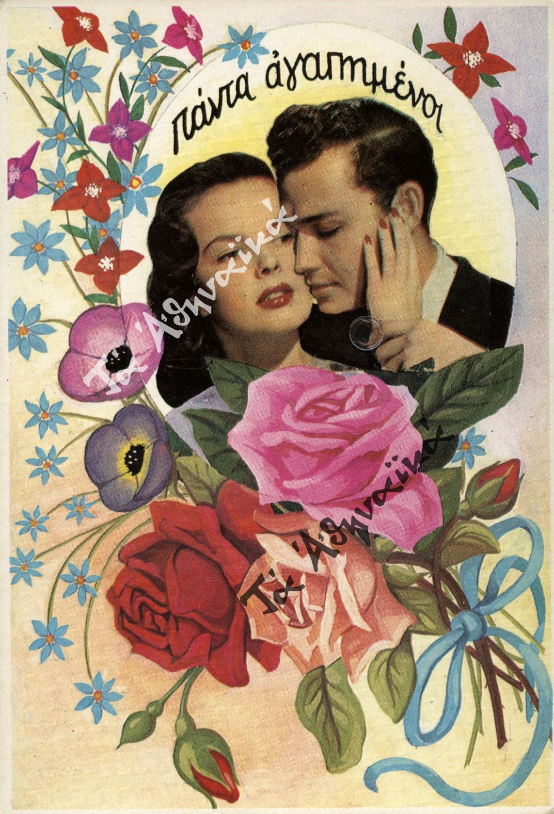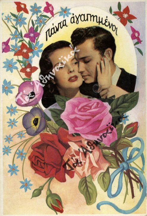 Ελληνική ευχετήρια κάρτα με την ευχή «πάντα αγαπημένοι» από τη Συλλογή Εφήμερων Αγγ. Παπαγγελή του «Συλλόγου των Αθηναίων».